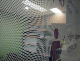 Печать на перфорированной пленке предназначена для изготовления элементов дизайна интерьера, наружной рекламы и других рекламных конструкций. Плёнка имеет микроотверстия, которые позволяют наносить изображение на неровные поверхности и создавать эффекты трёхмерности. Макет изображения предоставляет заказчик, выбор плёнки и технологии печати зависит от требований к качеству и долговечности изделия. После печати плёнка наклеивается на нужную поверхность или используется для изготовления световых коробов и панелей.